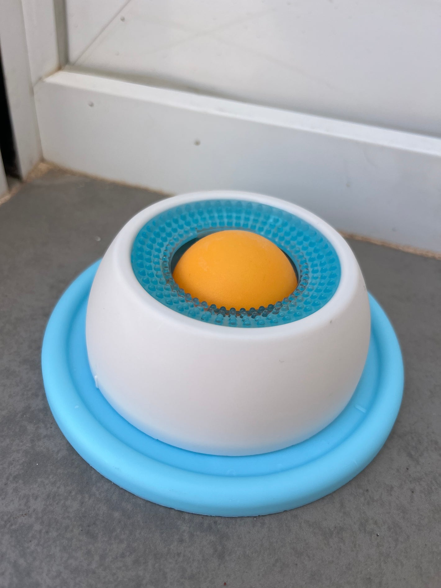 Nein. Es ist kein Spielzeug, sondern ein Anti-Stress-Schlecknapf.